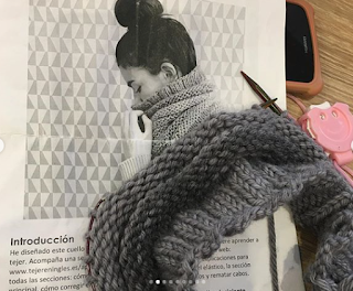 La Silvia avança amb el sey jersei a ganxet amb fil negre amb briili brilli de @katiayarns