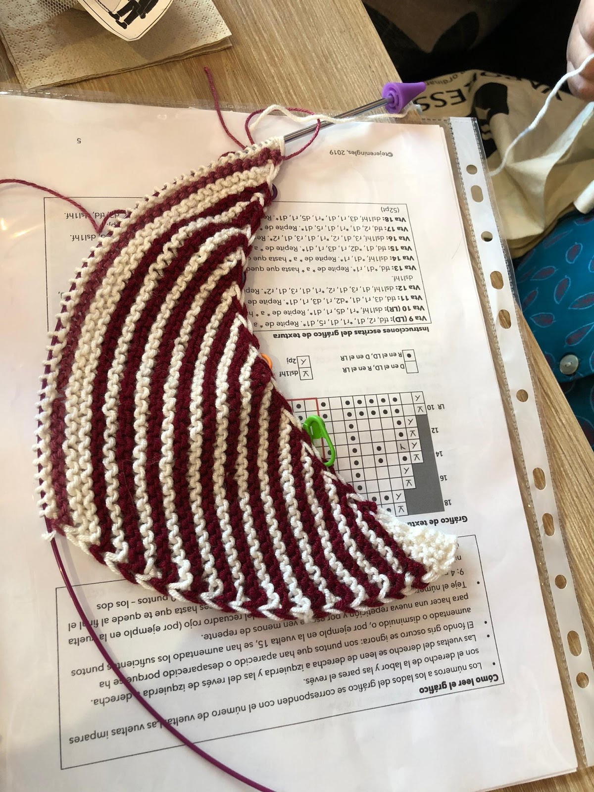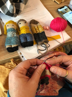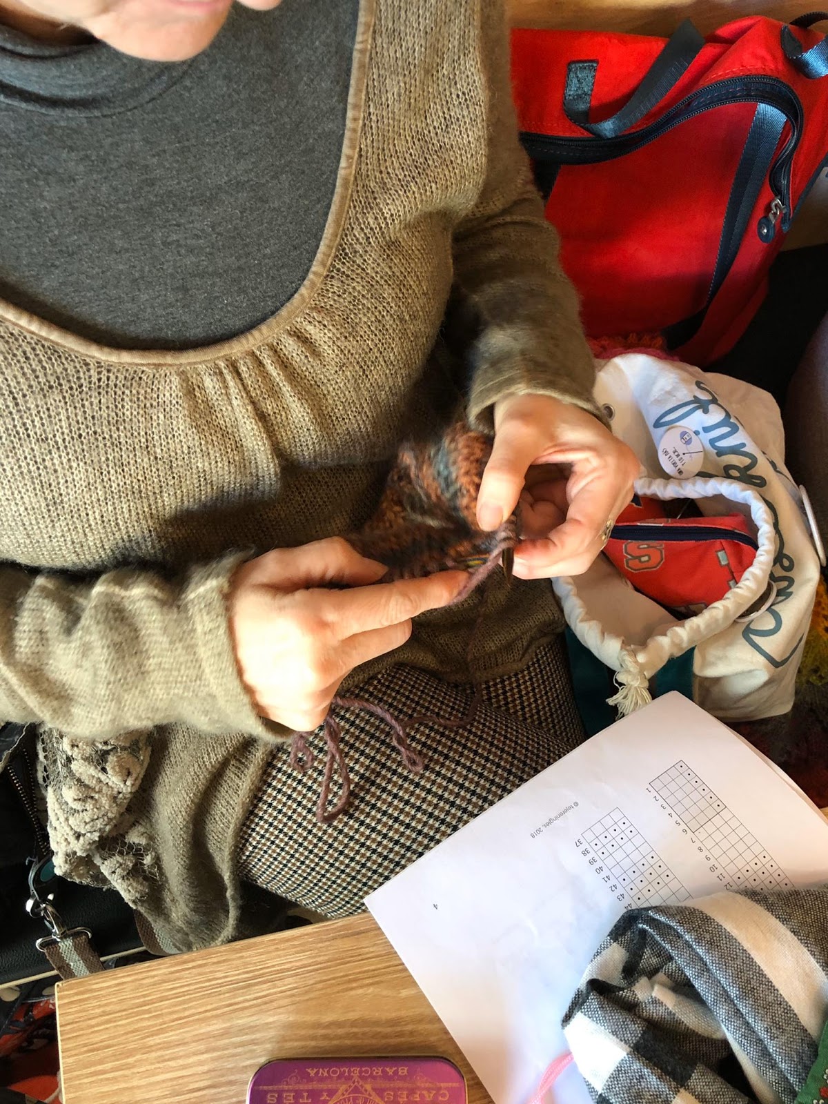 Varias del grupo empezaban proyecto nuevo, con las lanas compradas en la feria, y muchas tejen alguno de los patrones de Belen de Tejer en Ingles.